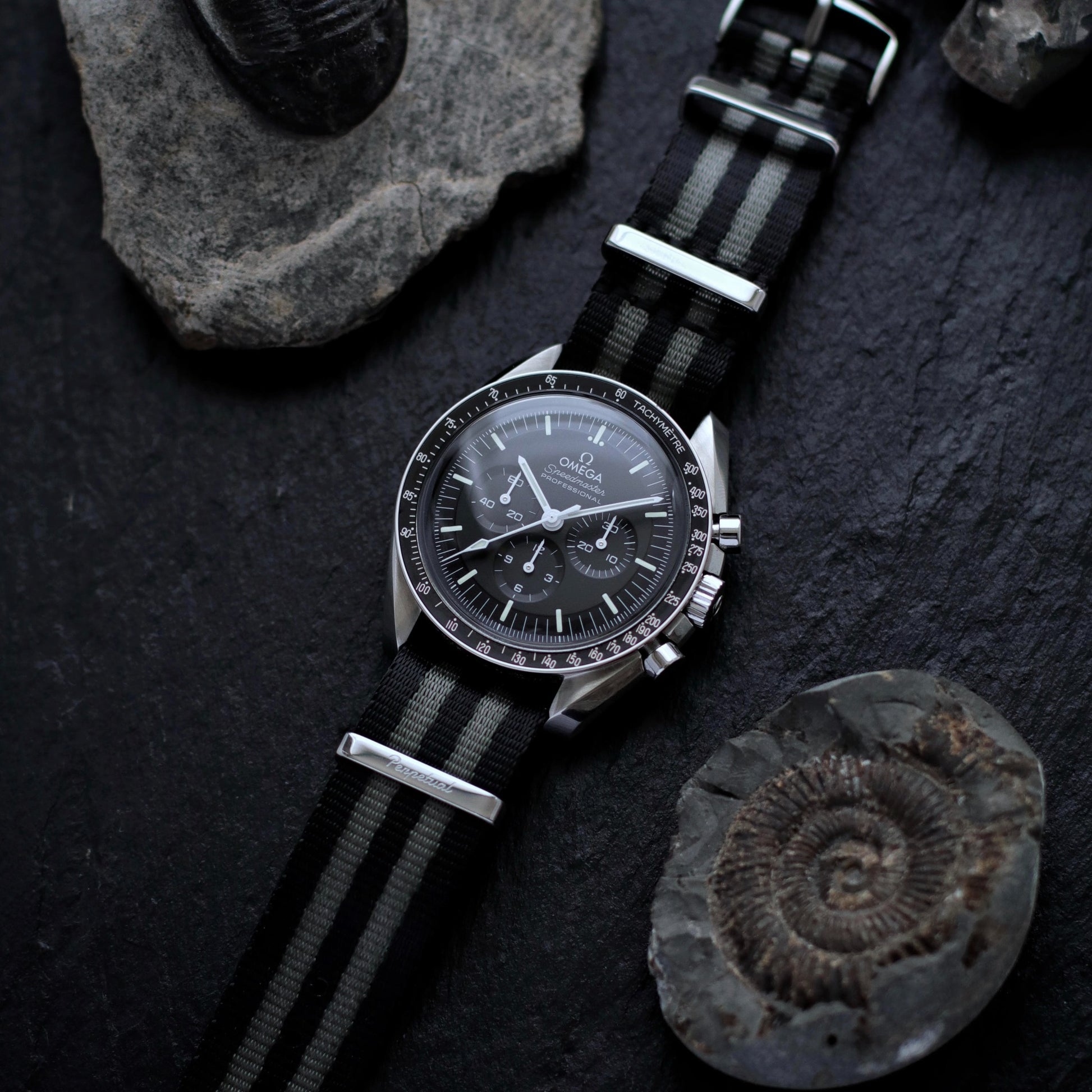 SCHWARZGRAUES NYLON – UHRENARMBAND AUS PREMIUMSTOFF für DIE MEISTEN UHREN MIT EINER 20-MM-ANSCHLUSSBREITE