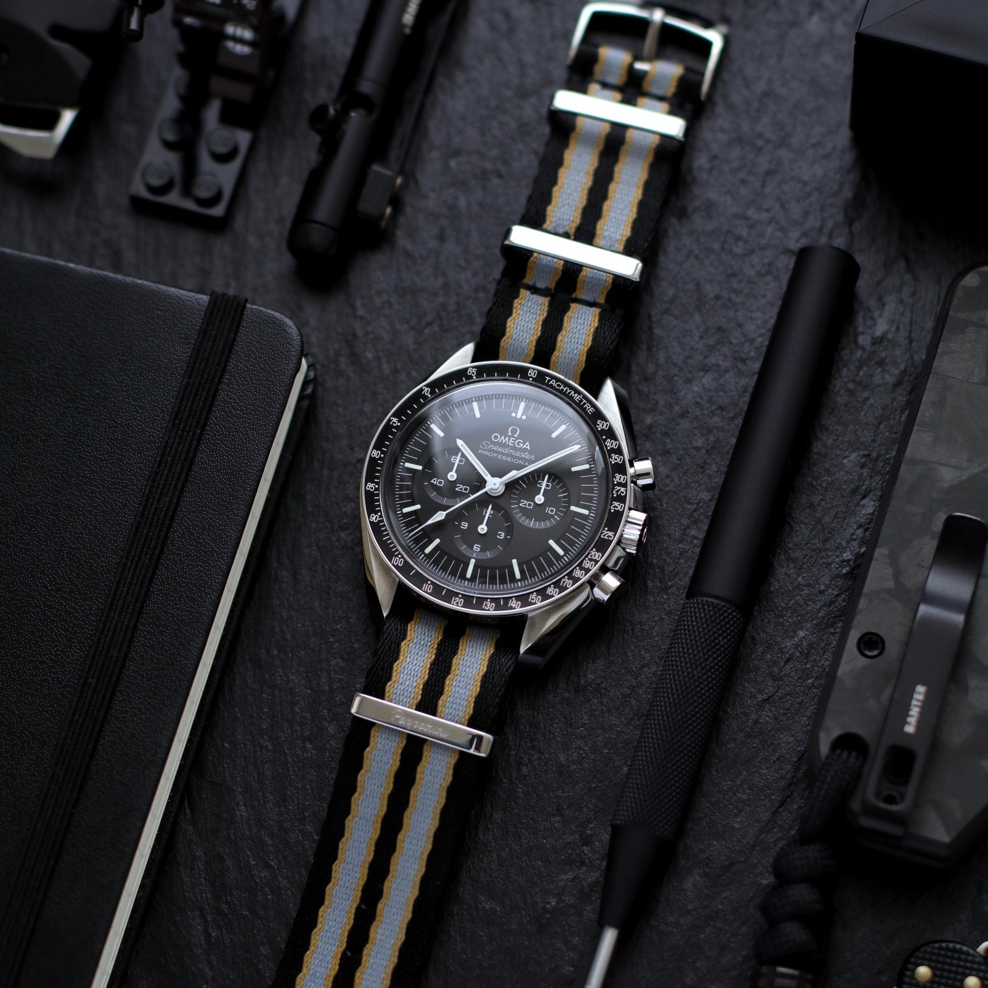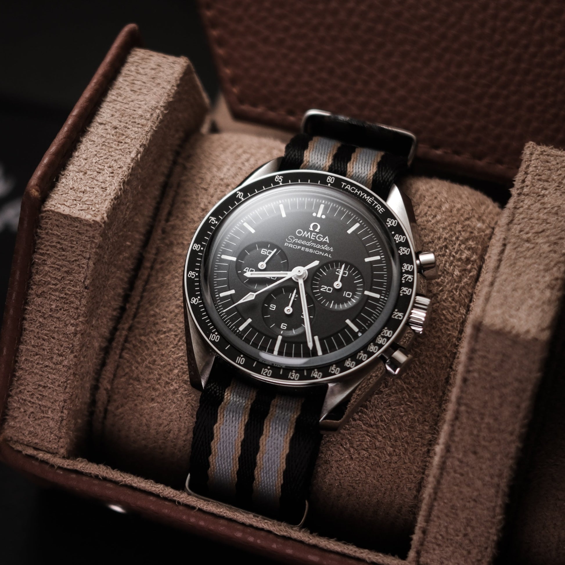 It also fits the majority of watches with 20mm lug widths, such as the Omega Speedmaster Professional Moonwatch (Cal. 3861).