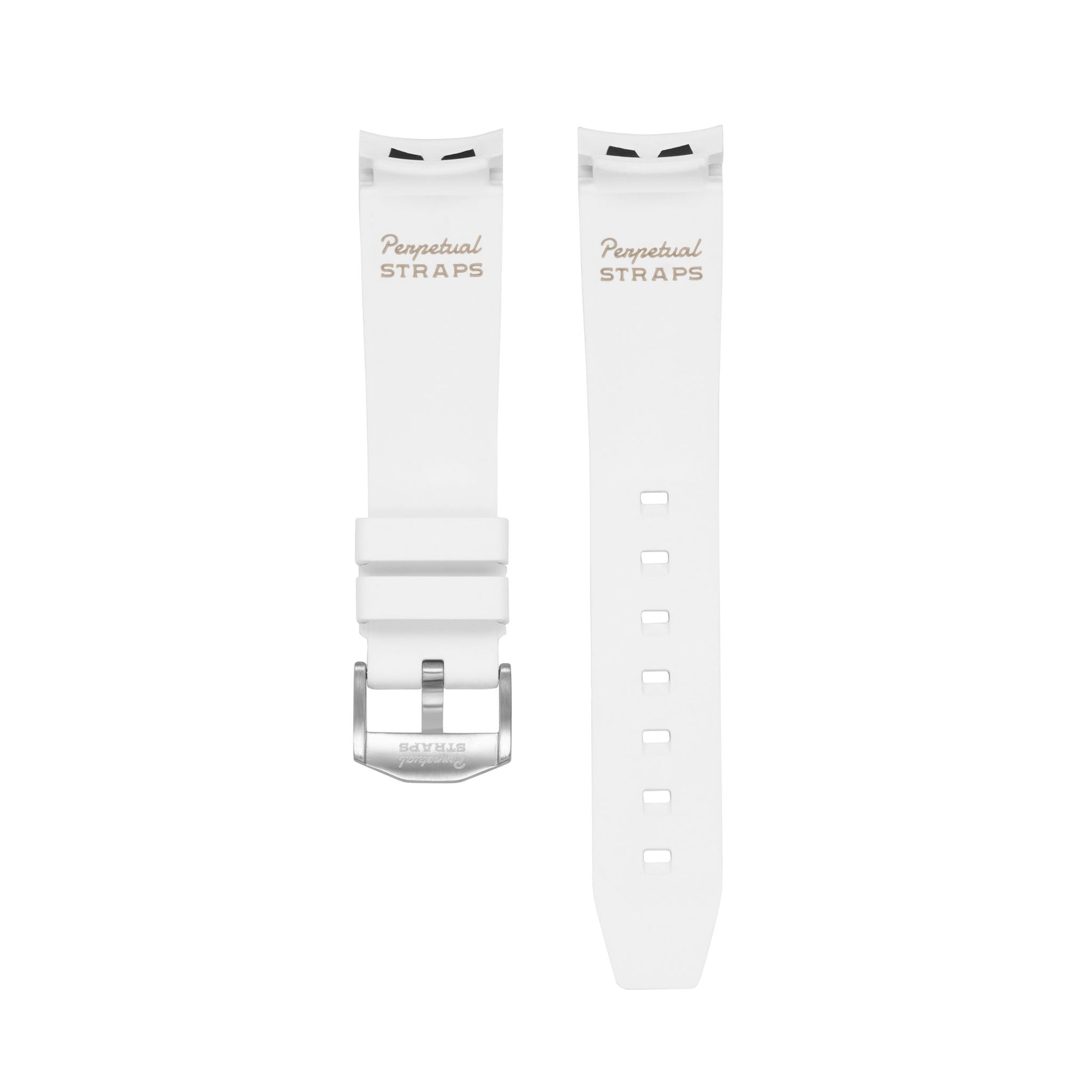 This strap is different from our other options in terms of design and durability. It is manufactured from the highest grade of Fluoroelastomer Rubber, which has excellent resistance to heat and chemicals. The strap also features a pre-installed brushed 316L Stainless Steel Tang Buckle.